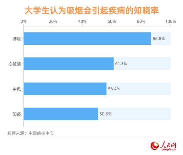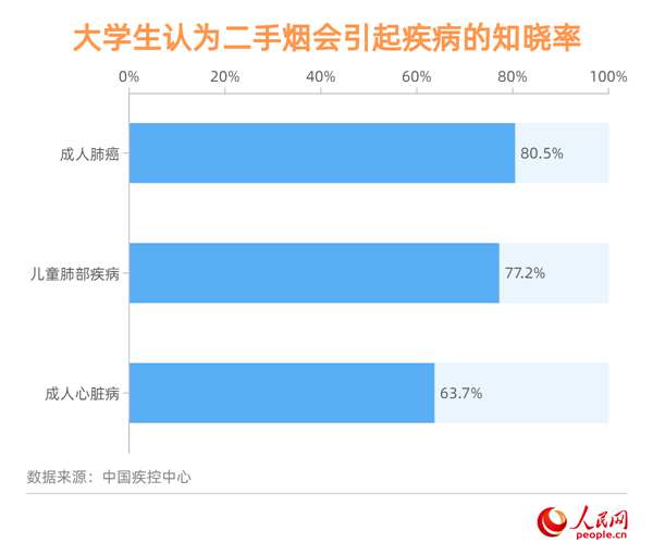 大学生认为二手烟会引起疾病的知晓率。制表:孙红丽